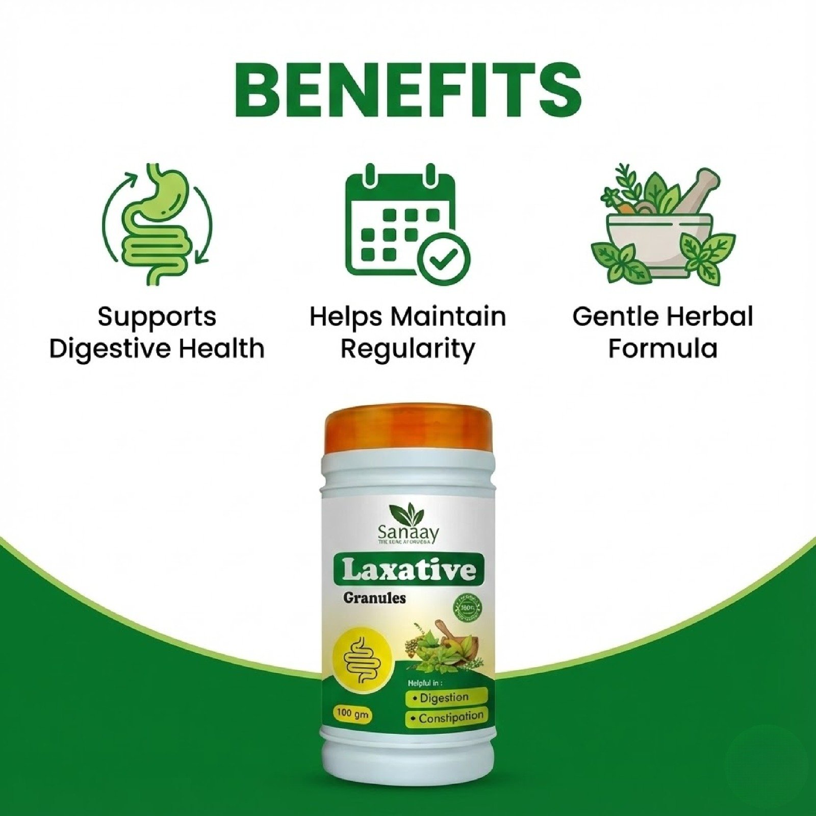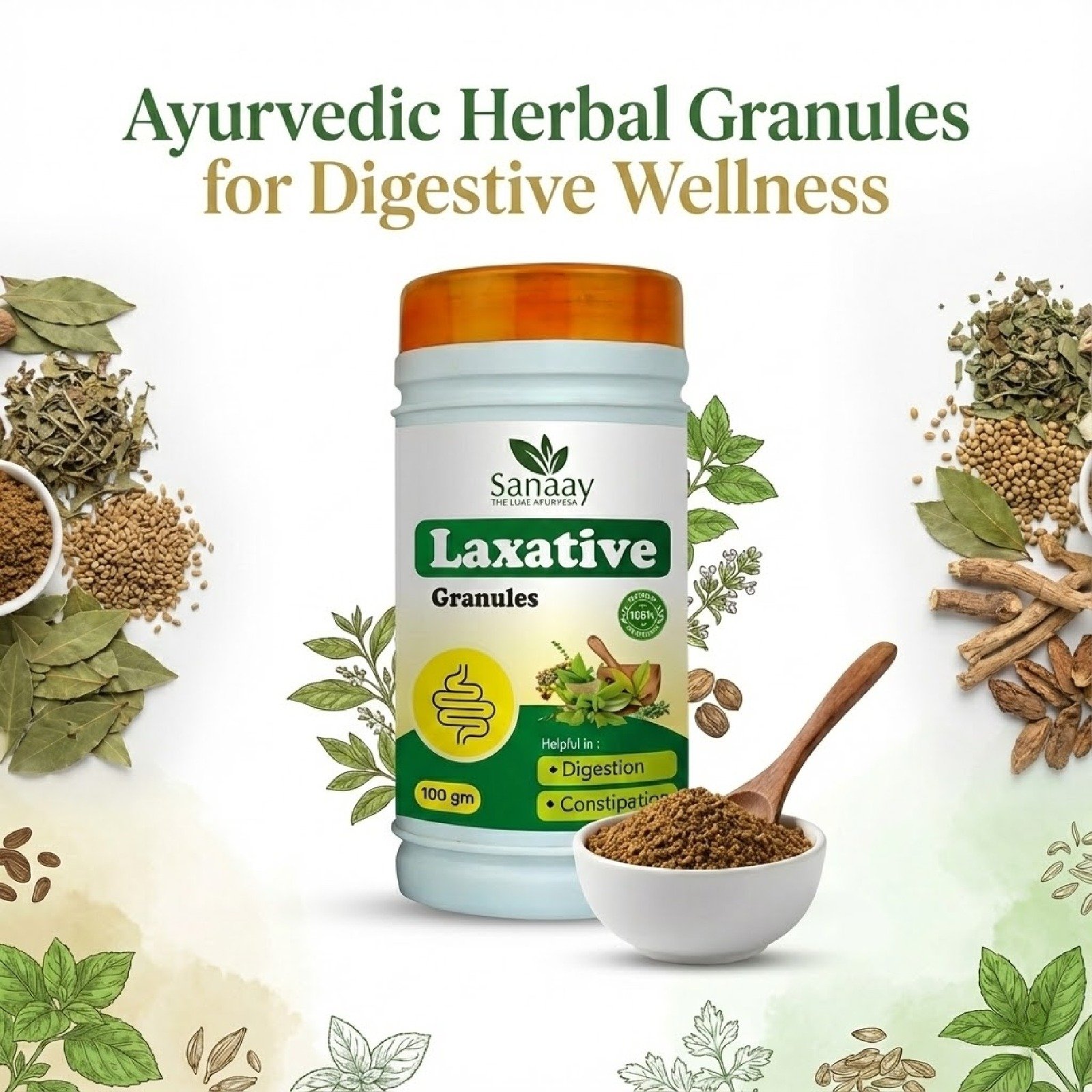- Natural Relief from Constipation — Ayurvedic herbal laxative granules formulated to support smooth bowel movement and help relieve constipation gently.